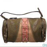 This smart and trendy collection has the cutest handbags for ladies. Made of purest soft leather in toffee brown and pure brown shades with a Chinese pink strap that runs through the center, that is stylishly designed and stitched to give the high fashion cool look; the bolster patchwork bag with metal studs is cool and attractive. Besides, it is made to allow storage of multiple items. The soft rounded edges provide snug and comfortable contours to enable easy carrying.