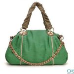 This fashionable Green Beauty Bag looks real classy. It has a stylish and unusual shape. There is an end to end metallic chain-like ornamentation covering the full body of the bag. The handles are short and covered with soft crumpled velvety material. It has an exclusive look which also has a trendy style. It is enough spacious inside and you can comfortably carry your essential tidbits in this hand bag.