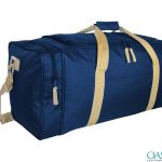 The organic blue and beige duffle sports bag comes with a glancing blue base that reflects super style and elegance. The broad central storage area comes with premium quality inner lining, so does the side and front pockets attached in similar blue textured base. Zippers in finest quality bring complete utility and purpose. The soft beige sling and handles on the top bring in requisite color contrast with significant effect.